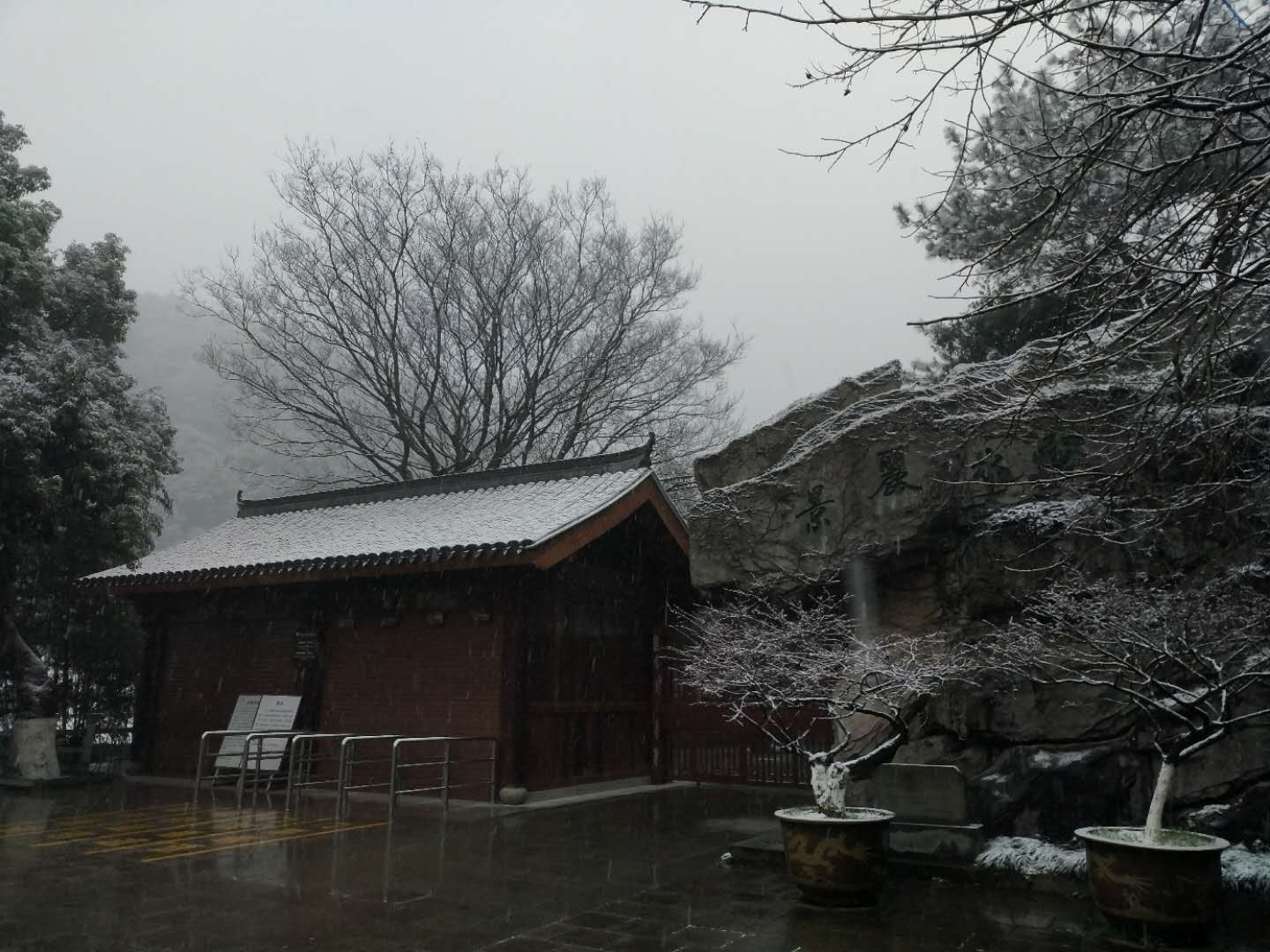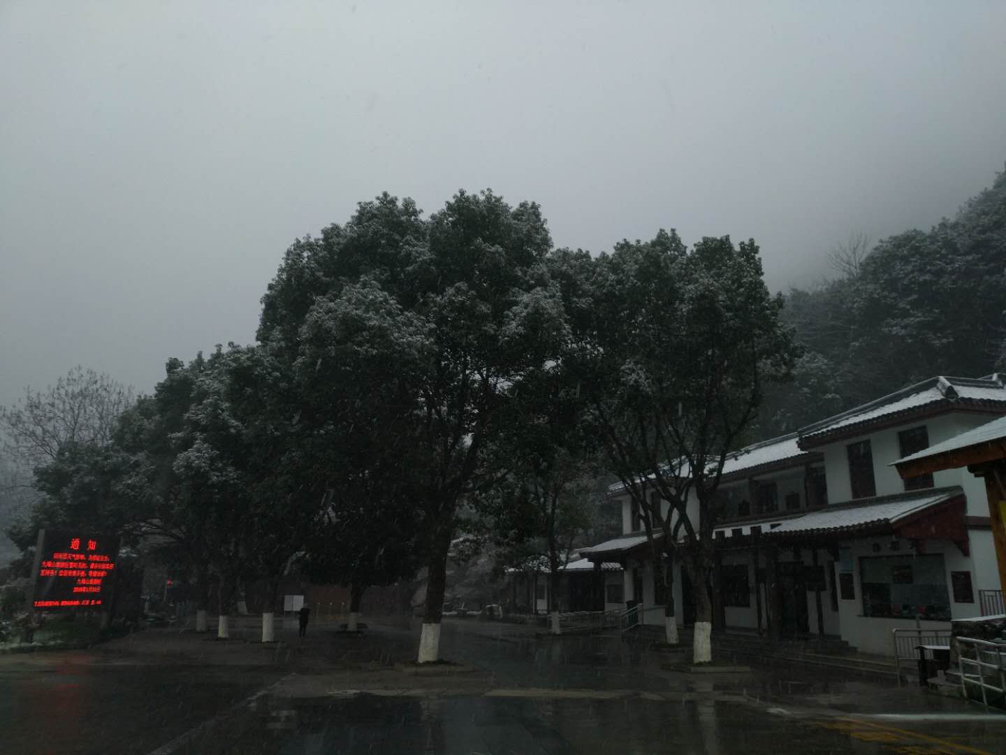 因雨雪天气影响,为确保安全,九峰山旅游区暂时关闭。